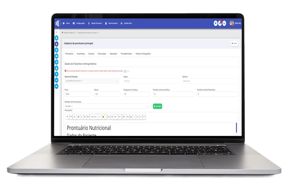 Sim. O nosso sistema, está de acordo com as regras da Lei de Proteção Geral de Dados (LGPD), garantindo a privacidade, integridade e segurança geral de todos os seus dados e de seus pacientes.